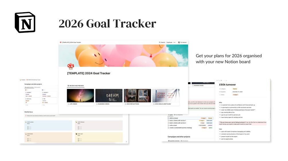 Follow the process with your 2026 goals which then can be broken down into actionable tasks to track over the next 12 months.